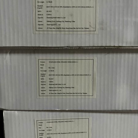 Sản phẩm đạt chuẩn AWS A5.22: E309LT1-1, đảm bảo độ bền cao, mối hàn sáng đẹp và chống ăn mòn vượt trội.